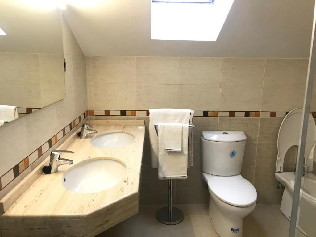 baño muy amplio pero con bañera sin mampara ni cortina ni lugar para colgar el teléfono de la ducha. De las 2 camas, una muy cómoda y la otra poco cómoda (dura con muelles)